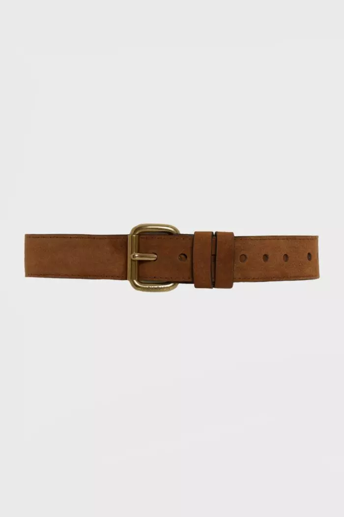 The Power belt is made from premium brown leather and features a sturdy gold-tone rectangular buckle. Designed to hold its shape and define the waist, it works equally well with casual outfits or tailored looks, making it a reliable everyday accessory.