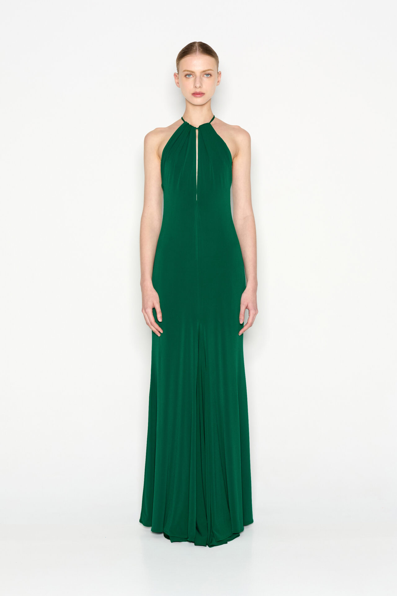 jersey crêpe, the fabric drapes beautifully to the floor, finished with subtle