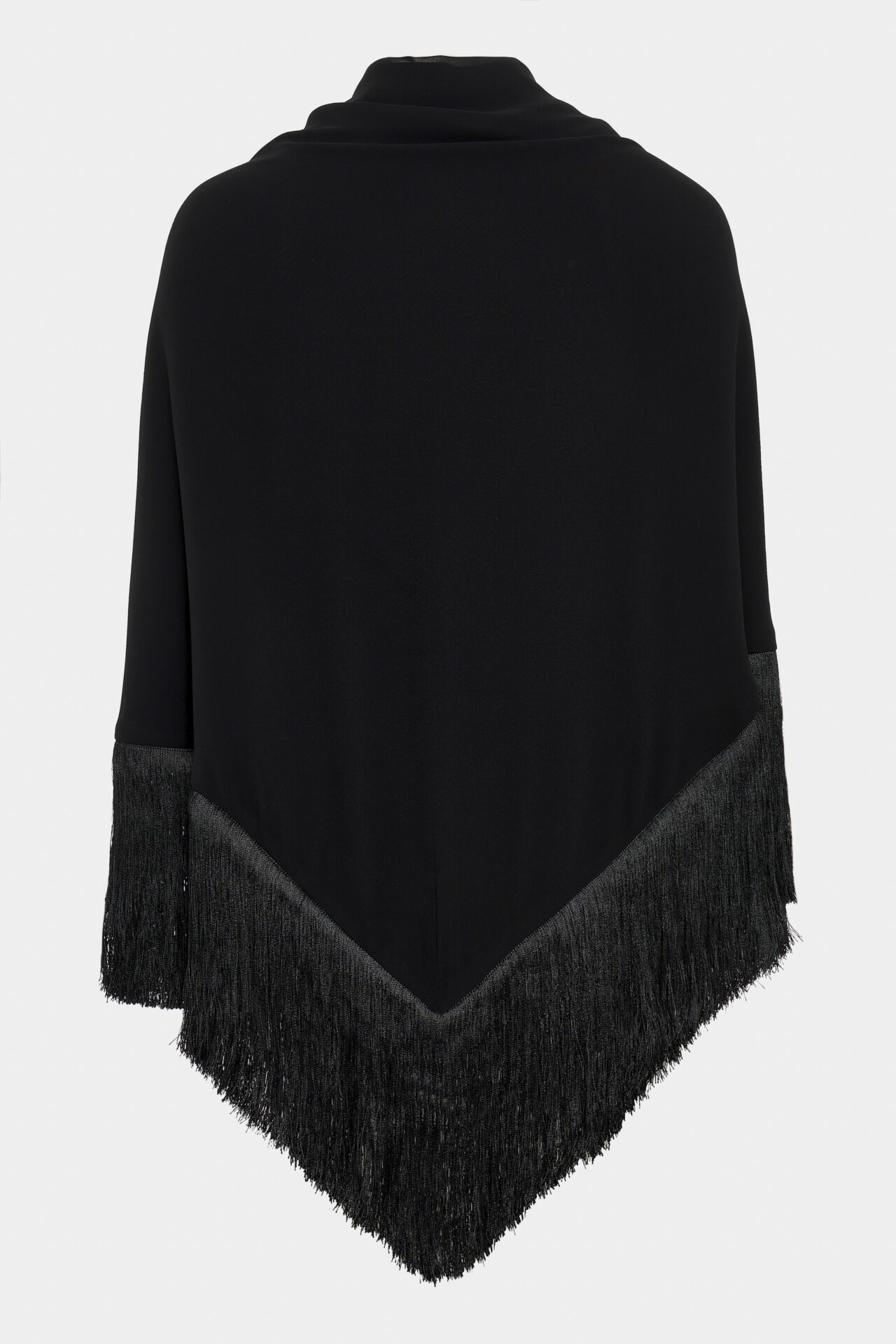The Hero Stole is made from soft satin that drapes smoothly over the shoulders. Long fringed edges add movement and texture, making it a standout layer for eveningwear or tailored outfits.