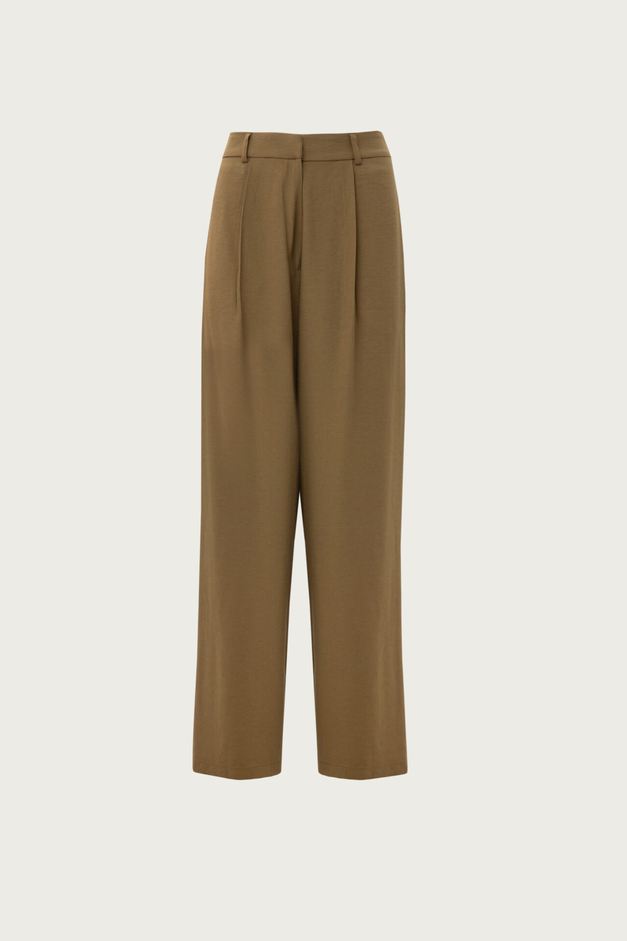 These wide-legged pants in a khaki shade are a classic piece of tailoring with pleating, side pockets, belt loops and a zip closure. Details an inner Decorative Contrast Piping in the waistband and is crafted from natural fabrics.