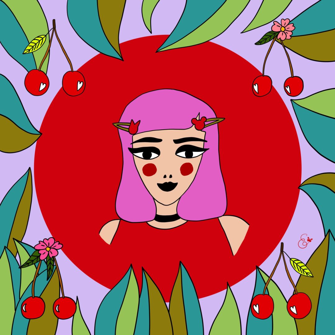 100% silk and digitally printed scarf from “Cherry Heart” collection.