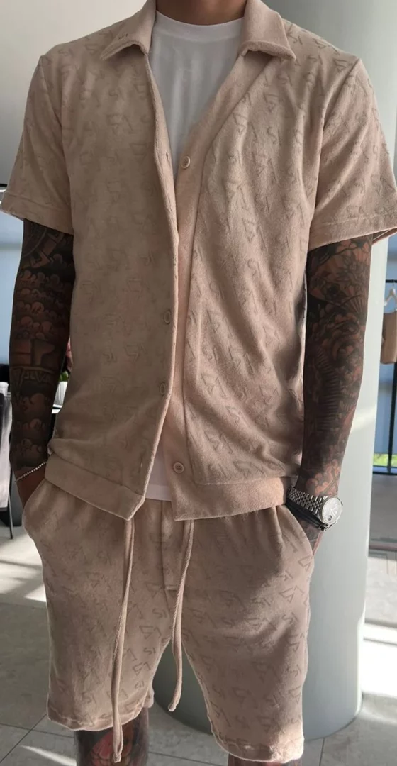 Crafted from premium cotton, the Toalla Beige Shirt adds a distinctive twist to your wardrobe. Offering all-day comfort, its sleek and classic design is enhanced by the embroidered SA x SV initials, a distinctive element of this exclusive collaboration. Versatile for post-workout ease or casual outings, this limited-edition piece combines comfort and style. Style it with the Toalla Beige Bermuda for a complete SA x SV ensemble. Limited stock available.