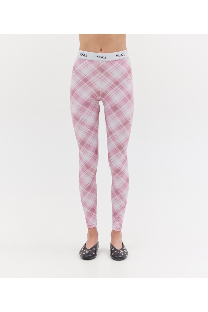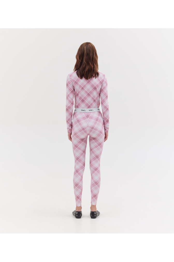 LYCRA LEGGINGS SSG ELASTIC IN THE WAIST PINK PLAID PRINT 100% RECYCLED POLYESTER WASH ACCORDING TO THE INSTRUCTIONS ON THE GARMENT