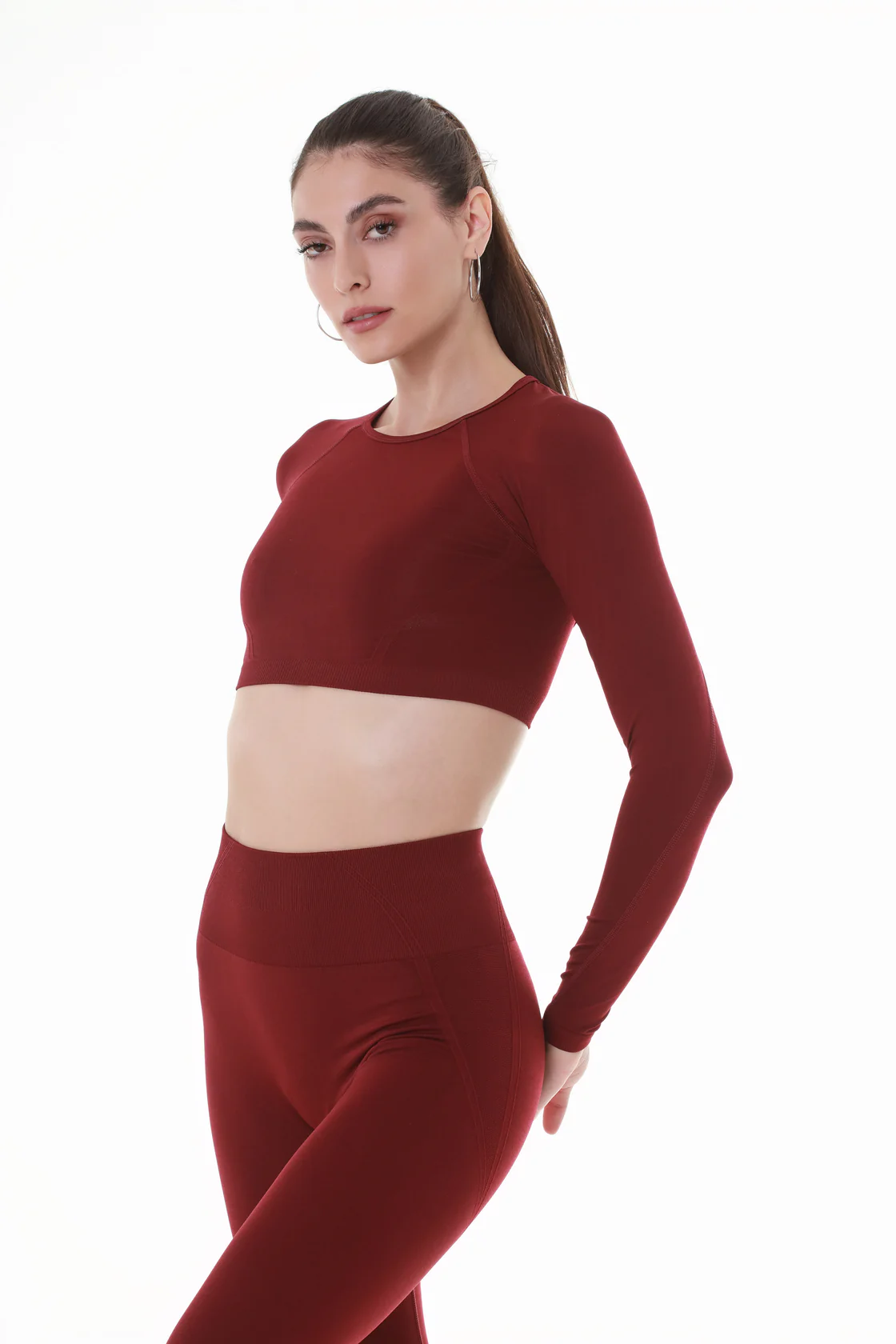 A sophisticated brown long sleeve top with a striking open back design. Its soft, breathable fabric with a blend of polyamide, polyester and elastane provides a perfect combination of stretch and comfort, making it ideal for stylish layering or a stand-alone statement piece. Whether you dress it up or keep it casual, this top brings a stylish touch to any look.