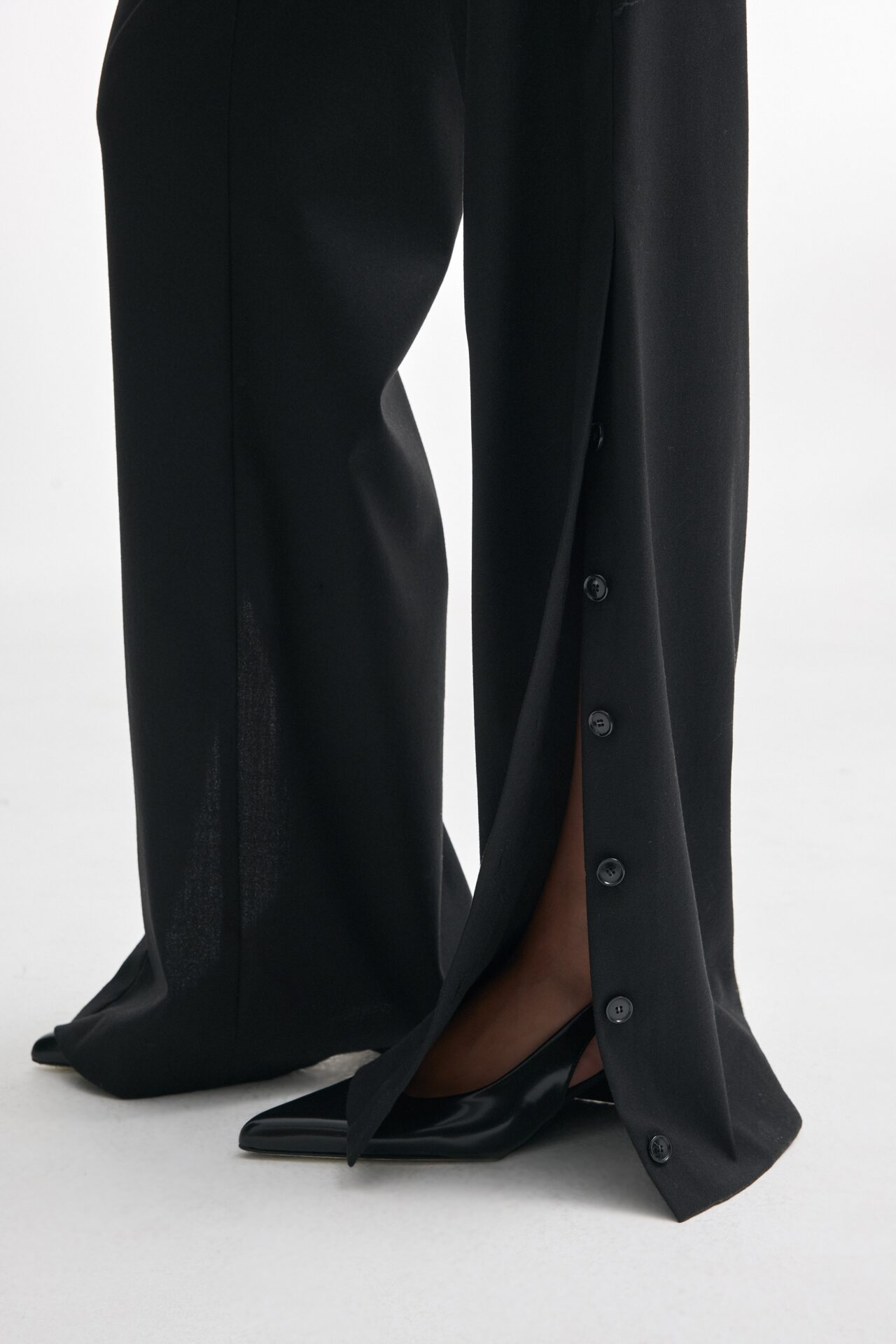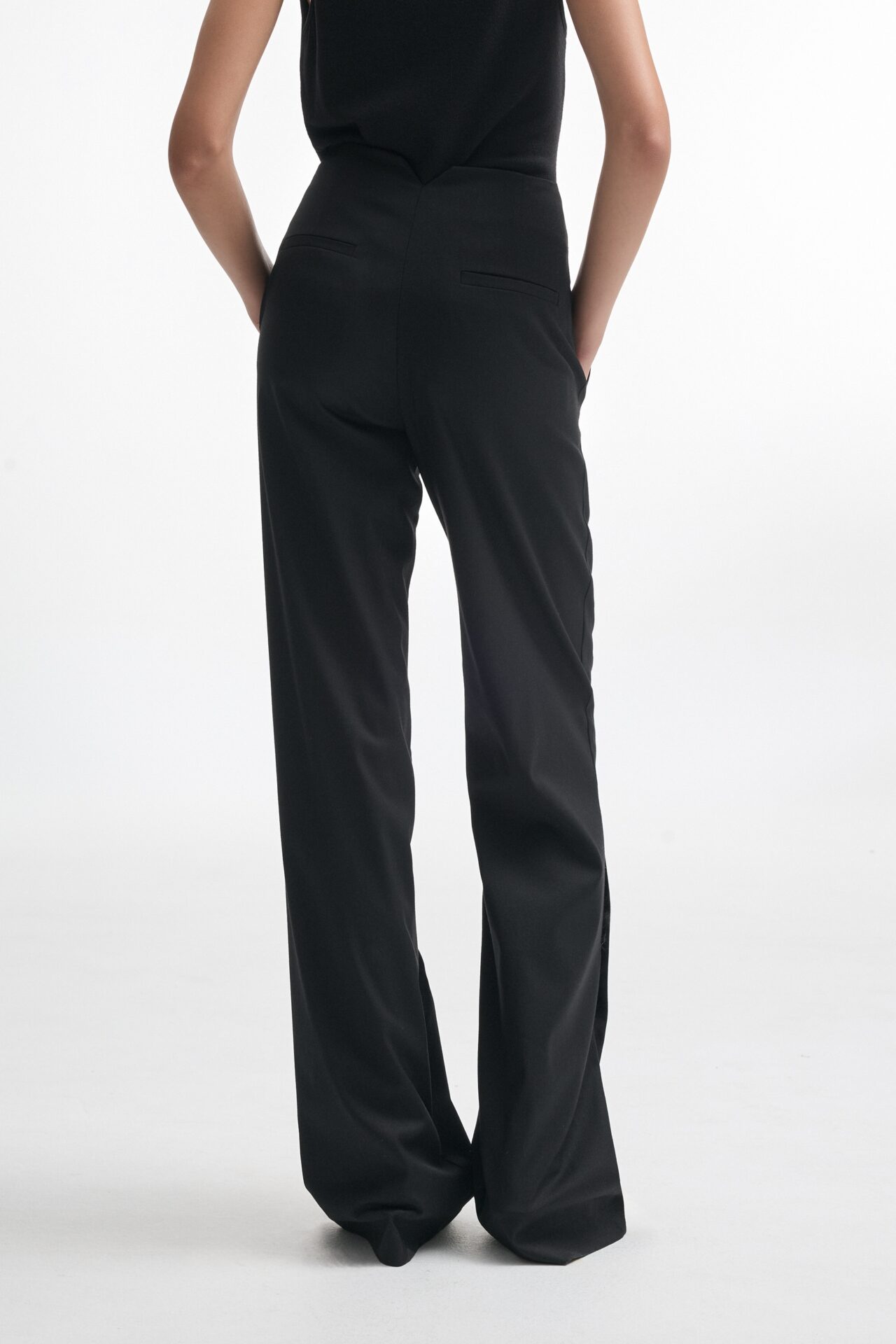 The Night Shift trousers feature a shape-changing leg that can be worn straight or slightly flared. Made from high-quality fabric, they hold their shape while remaining comfortable. A piece that moves easily from day to night, pairing seamlessly with the matching blazer or other wardrobe staples.