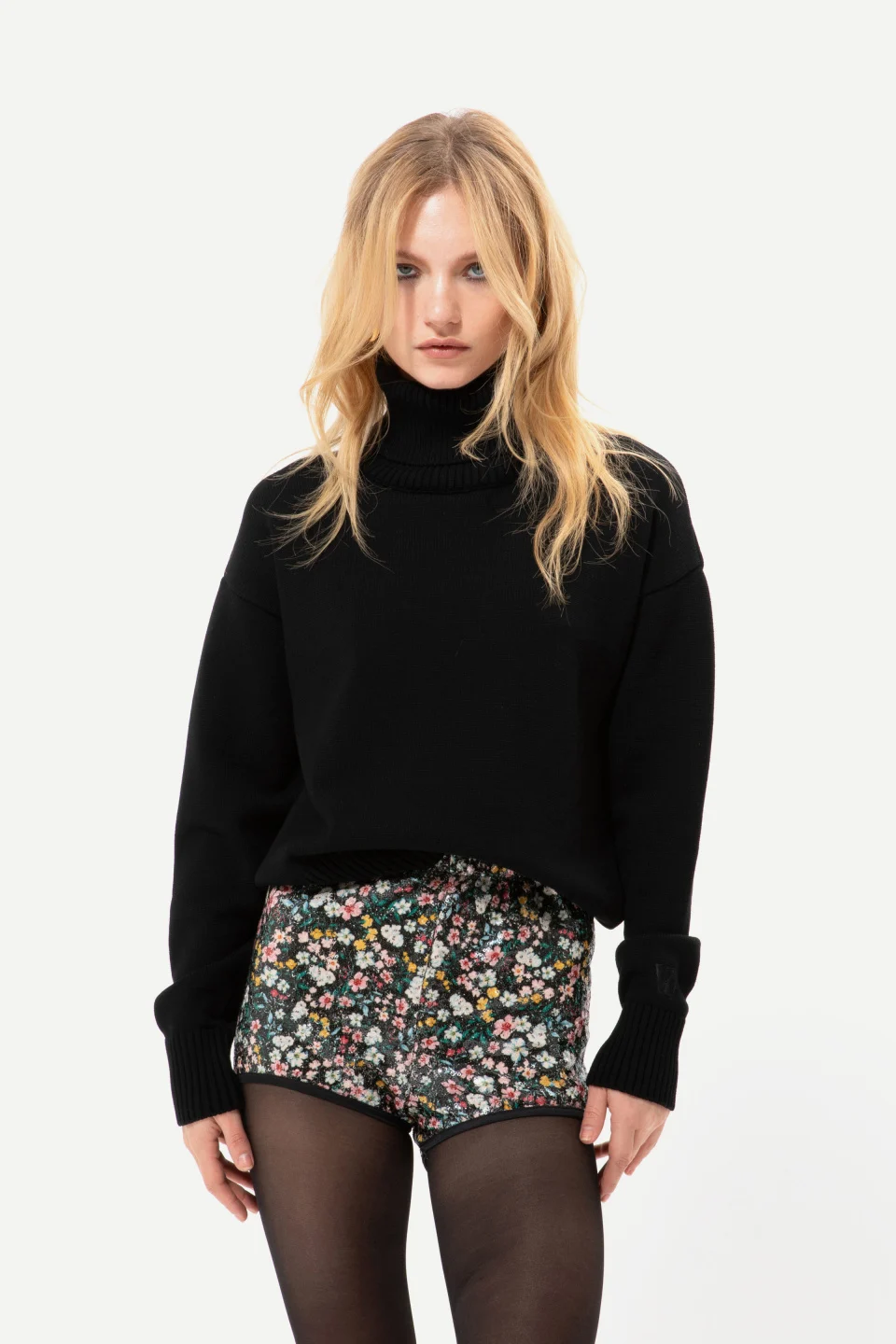 Add a touch of glamour to your outfit with these floral sequined shorts. Featuring a playful yet refined design, the shimmering details create a statement piece that pairs perfectly with cozy knits or sleek tops. An elevated staple for festive or chic casual occasions.