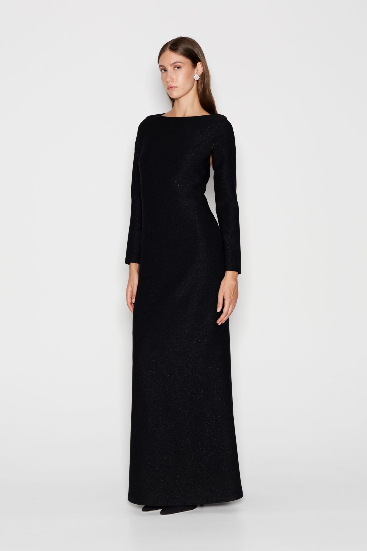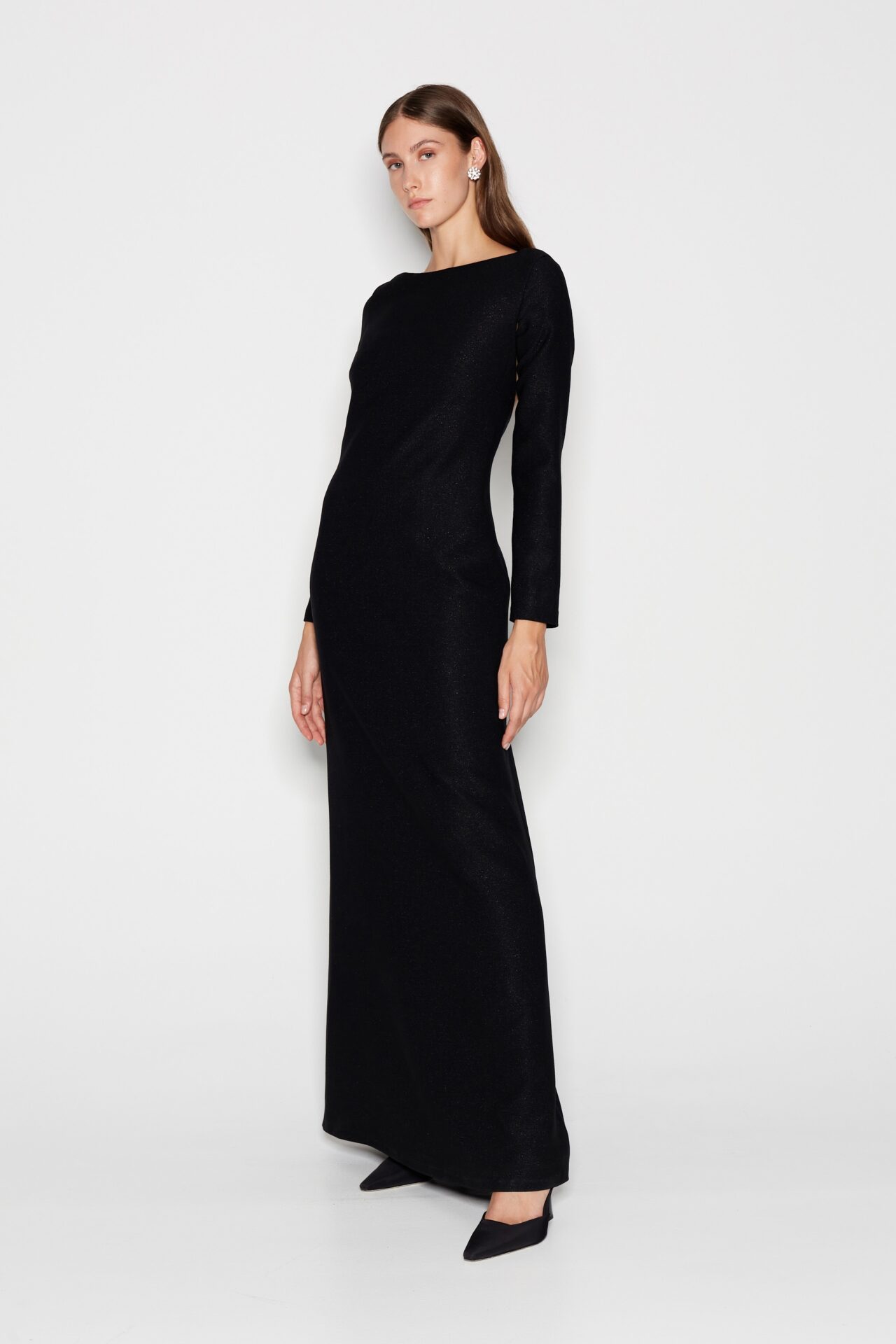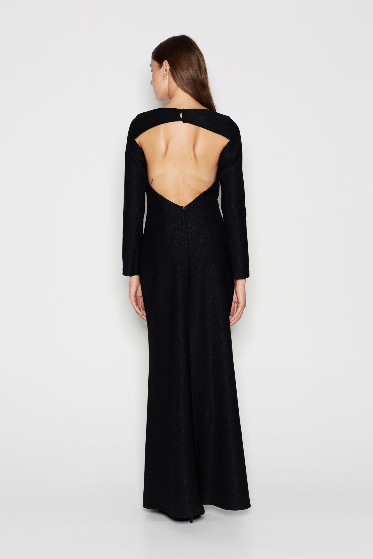 The Chic Cine dress is designed for a figure-skimming fit, featuring an elegant neckline and a dramatic open back. With its long hem and sophisticated silhouette, this dress is the perfect blend of allure and refinement. Style it with strappy sandals for the ultimate holiday look.