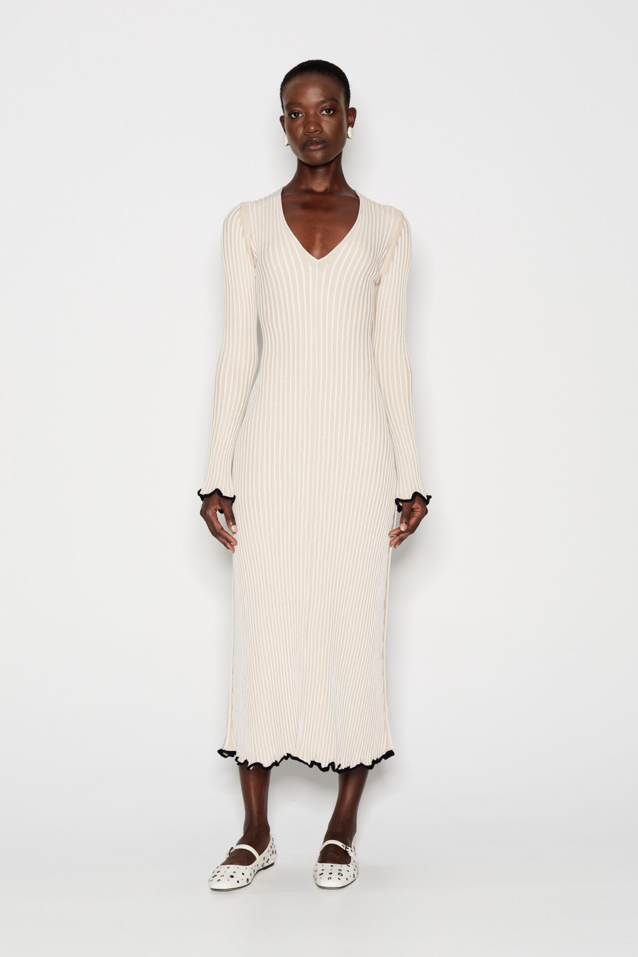 The Fall of Fame dress is crafted with a sheer open-knit construction that accentuates your figure beautifully. Its slim fit hugs your curves in all the right places, creating a flattering silhouette that turns heads. The V-neck design provides the perfect canvas for layering a stack of necklaces, while the mermaid hem gracefully sways with every movement, bringing a playful vibe.