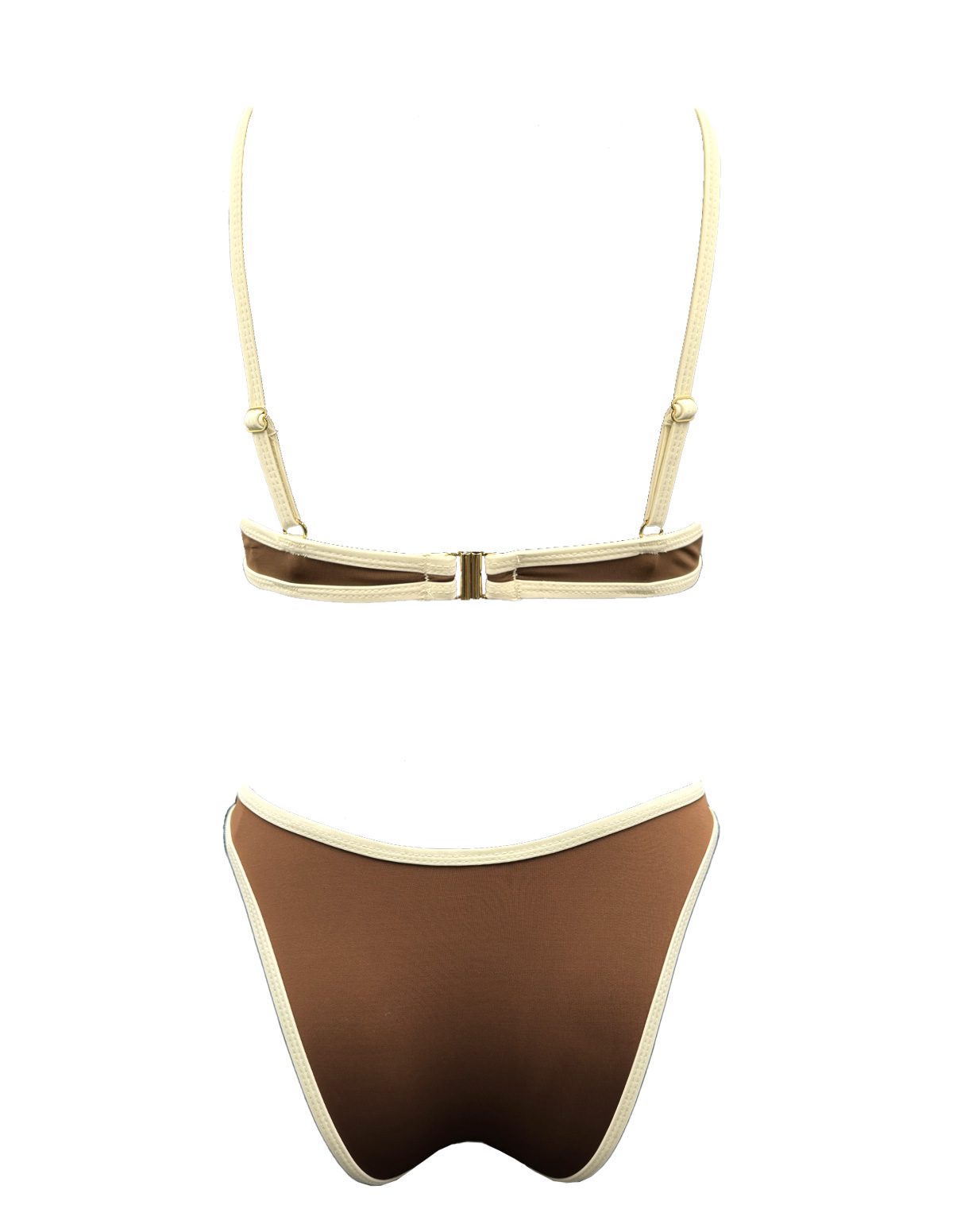 Scoop bikini top with adjustable shoulder straps and high rise bikini bottom.